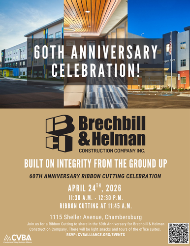 Join us for a Ribbon Cutting to share in the 60th Anniversary for Brechbill & Helman Construction Company. There will be light snacks and tours of the office suites.