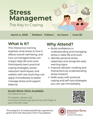 This interactive training focuses on increasing participants’ understanding of stress and how it affects mental, emotional, physical, and behavioral well-being. Participants explore what stress is, common stress responses, and factors that contribute to stress in daily life, including work demands, life transitions, and decision-making pressures. The training also examines how unmanaged stress can impact relationships, workplace functioning, and overall quality of life. Emphasis is placed on practical coping strategies, stress-reduction techniques, and the role of self-care in maintaining balance. Participants leave with realistic tools they can apply immediately to better manage stress and support personal and professional well-being.